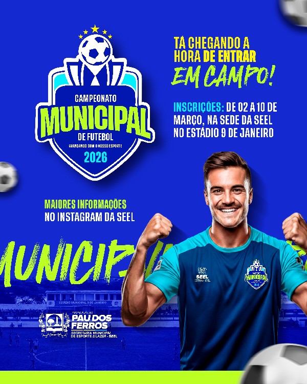 A Prefeitura de Pau dos Ferros, por meio da Secretaria Municipal de Esporte e Lazer (SEEL), informa que as inscrições para o Campeonato Municipal d [...]