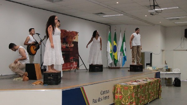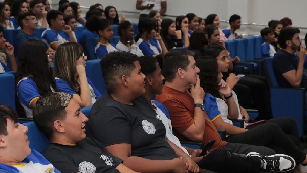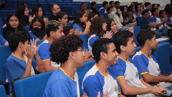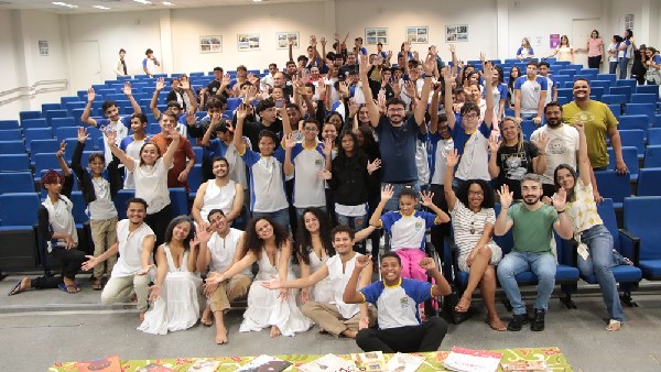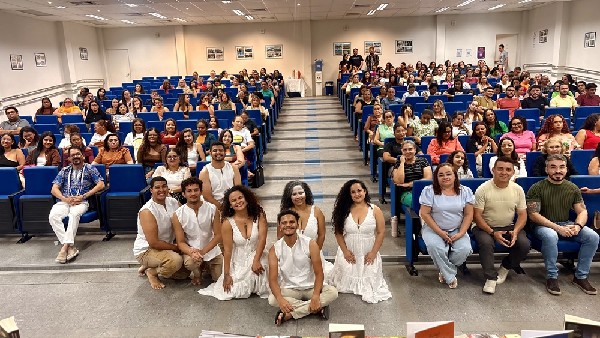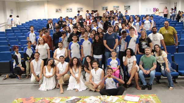 Pela manhã, estudantes do 8º e 9º ano do Ensino Fundamental participaram de momentos de arte, reflexão e aprendizado no Auditório de Convivência da UFERSA. A programação incluiu o Espetáculo Manifesto Negro
