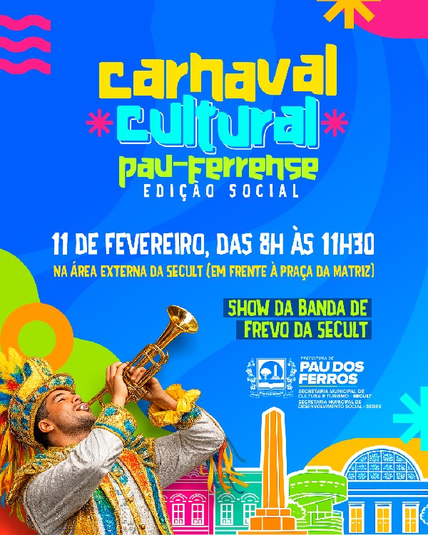 No dia 11 de fevereiro, será realizado o Carnaval Cultural Pau-ferrense