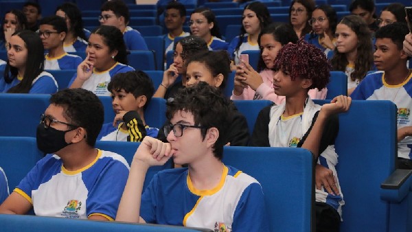 Pela manhã, estudantes do 8º e 9º ano do Ensino Fundamental participaram de momentos de arte, reflexão e aprendizado no Auditório de Convivência da UFERSA. A programação incluiu o Espetáculo Manifesto Negro