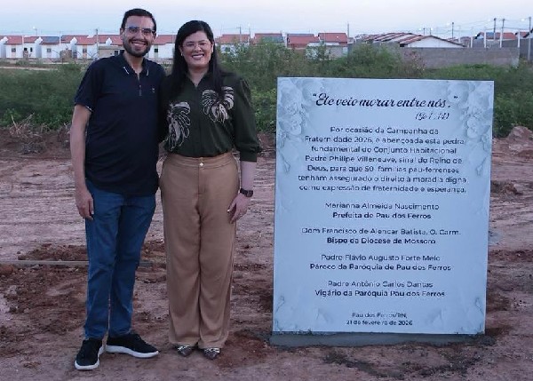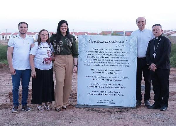 A Prefeitura de Pau dos Ferros, em parceria com a Igreja Católica do município, por meio da Diocese de Mossoró, realizou no final da tarde deste sábado (21) a cerimônia de bênção e implantação da pedra fundamental do Conjunto Habitacional Padre Philippe Villeneuve, no bairro Chico Cajá. O ato simbólico marca uma nova etapa do projeto habitacional que irá beneficiar 50 famílias com moradias dignas.
